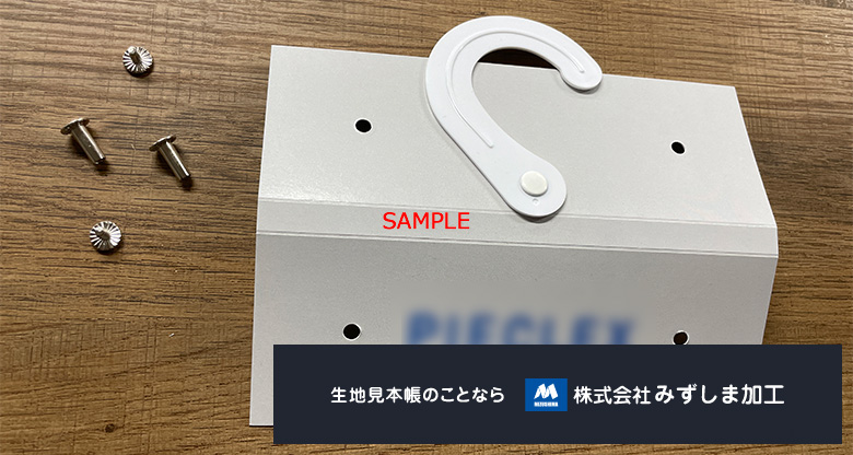 生地を綴じる用途は同じですが、たくさん生地を綴れますが、ホチキス留めではないので生地を綴じる際にビス位置に穴をあける必要があります。